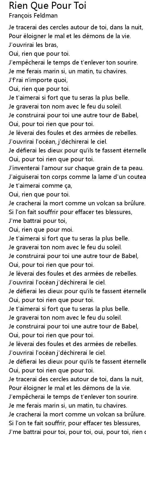 | Oui, pour toi rien que pour toi. | |