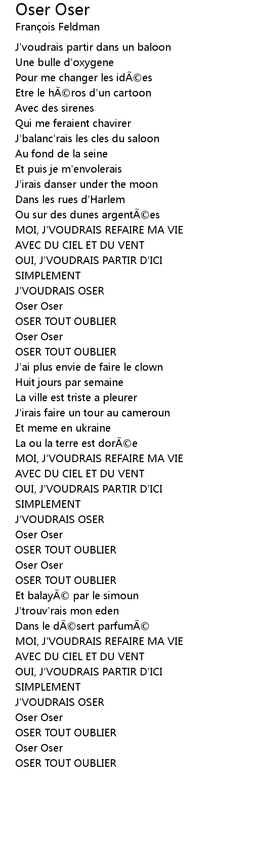 | OUI, J' VOUDRAIS PARTIR D' ICI | |