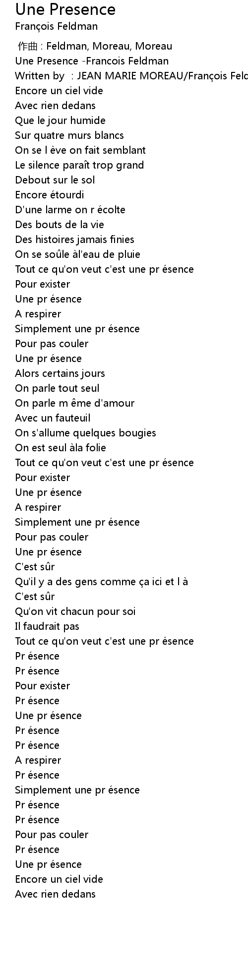 | [00:01.766] | Written by : JEAN MARIE MOREAU Fran ois Feldman |