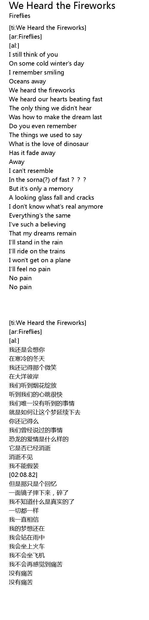 | [00:39.74] | We heard the fireworks |