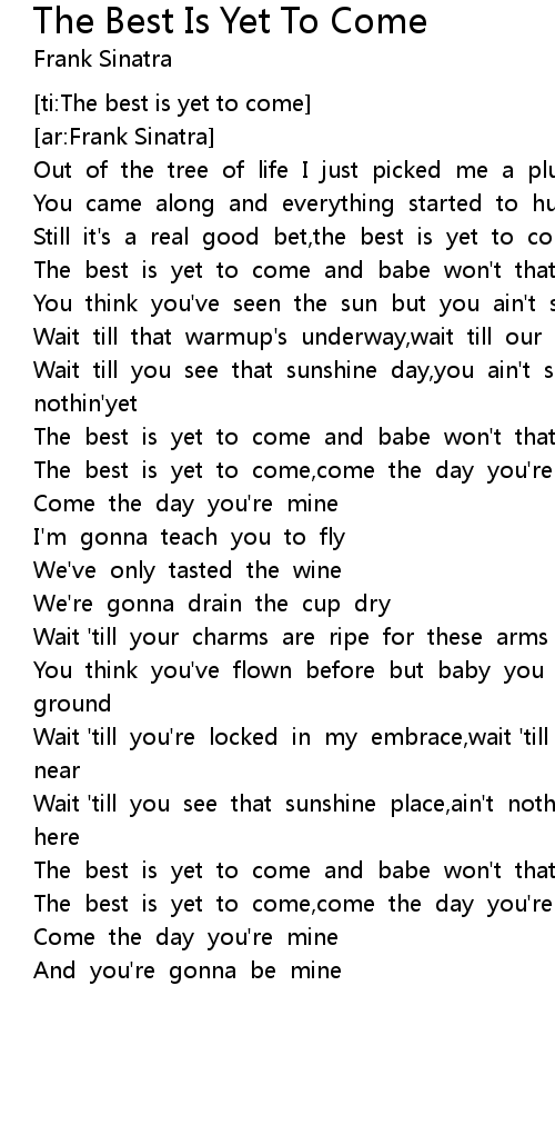 The best is yet to come and babe won't that be fine |