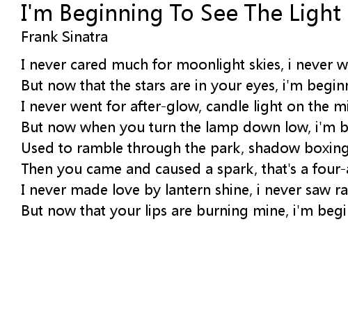 But now that the stars are in your eyes, i'm beginning to see the light. |