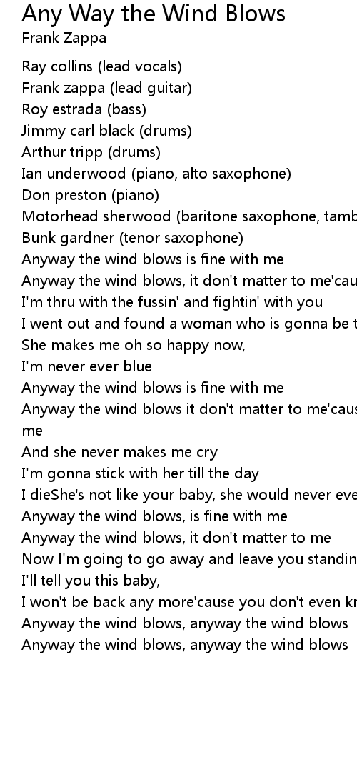 Anyway the wind blows it don't matter to me'cause she treats me like she loves me |