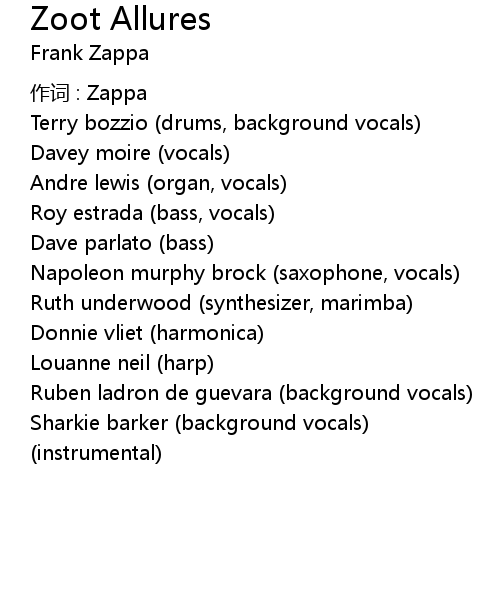 | Song | Zoot Allures |