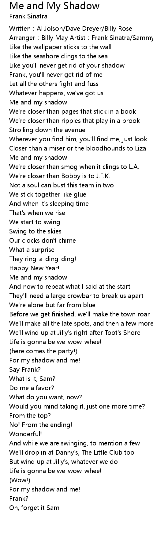 | Song | Me and My Shadow |