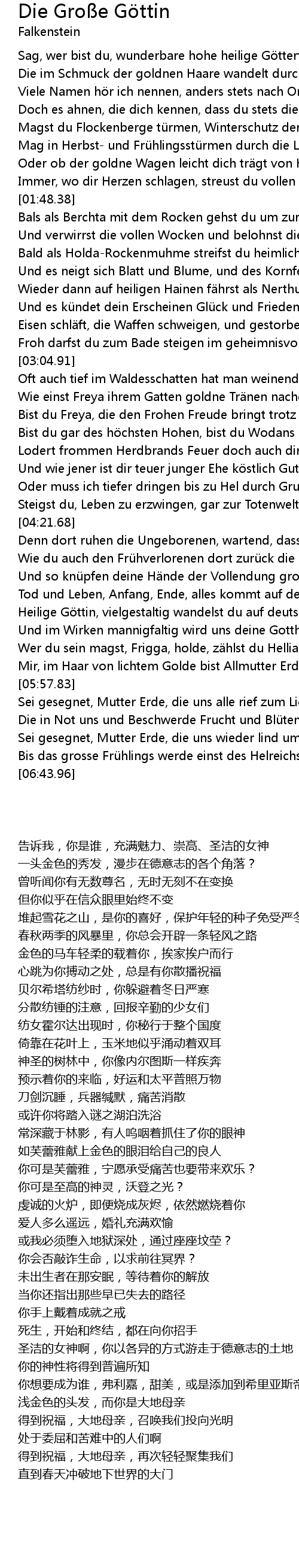 | [03:43.08] | Bist du gar des höchsten Hohen, bist du Wodans Licht Gemahl? |