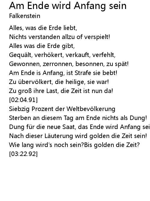 | [01:37.95] | Am Ende is Anfang, ist Strafe sie bebt! |