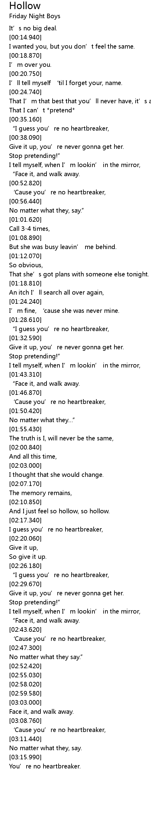 | [03:09.880] | ‘Cause you’re no heartbreaker, |
