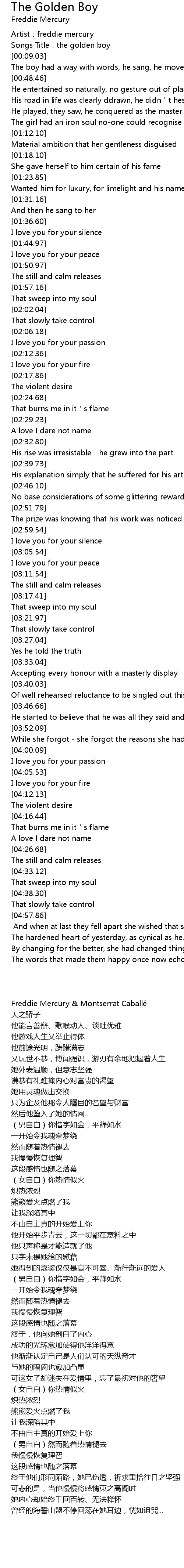 | [00:01.66] | Artist:freddie mercury |