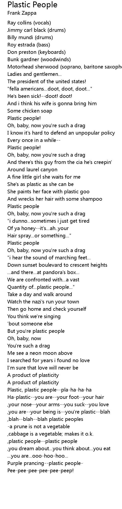 Plastic, plastic people--pla-ha-ha-ha |