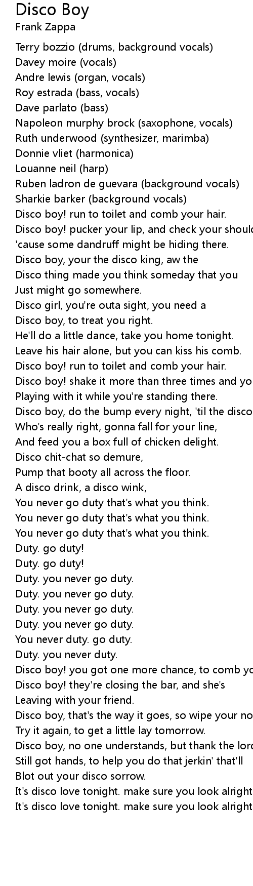 Disco boy, no one understands, but thank the lord that you |