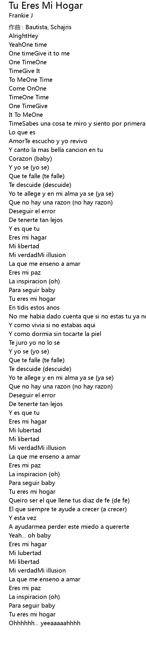 | No me habia dado cuenta que si no estas tu ya no hay un yo ohhhh yeah | |