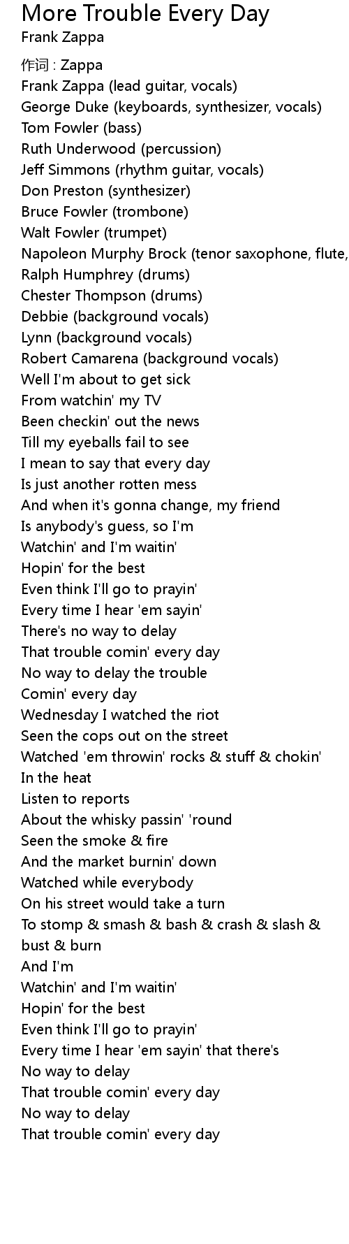 | That trouble comin' every day | |