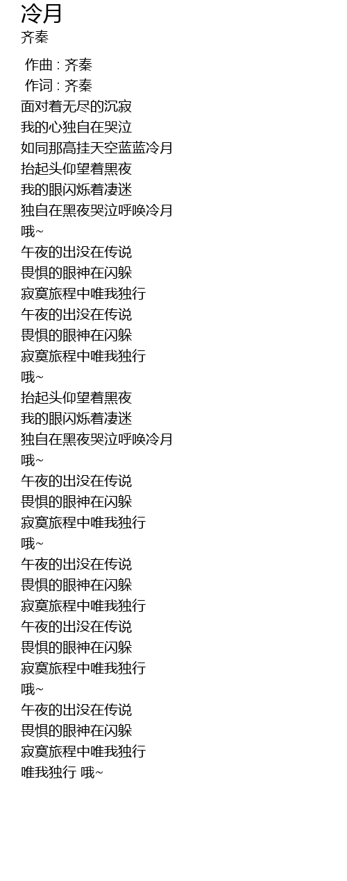 | [01:16.880] | du zi zai hei ye ku qi hu huan leng yue |
