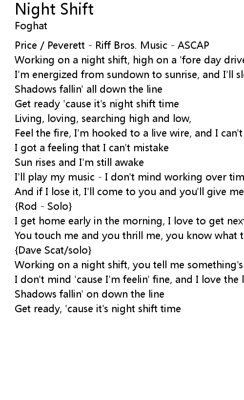 | Get ready 'cause it's night shift time | |
