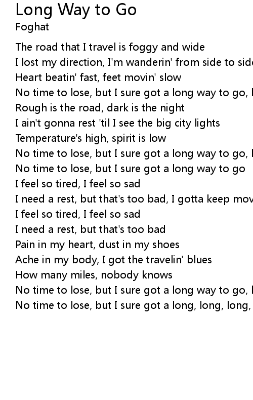 No time to lose, but I sure got a long way to go, long way to go |