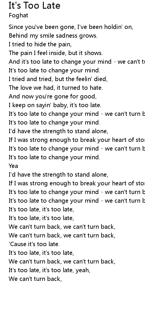 And it's too late to change your mind - we can't turn back the hands of time, |