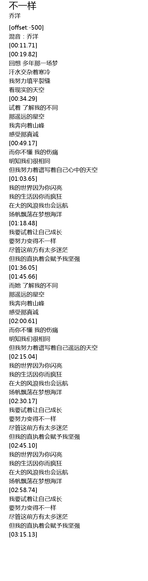 | [03:02.92] | yào nǔ lì biàn de bù yí yàng |