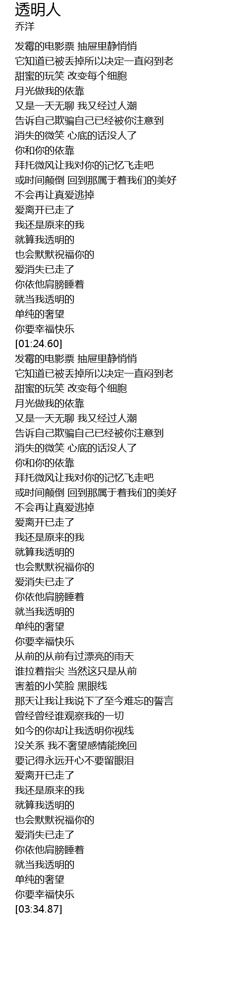 | [03:26.47] | 就当我透明的 |