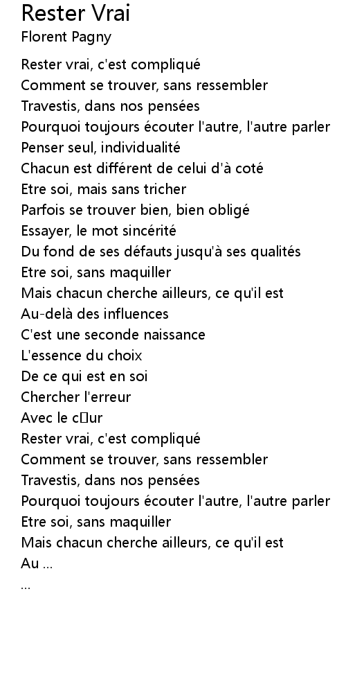 | Song | Rester Vrai |