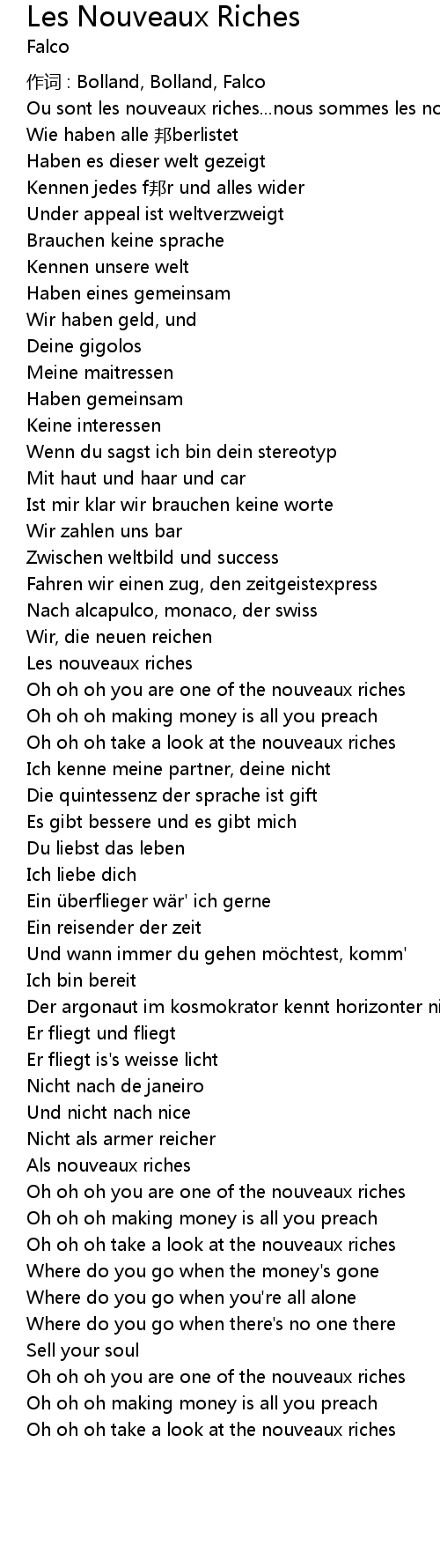 | Oh oh oh take a look at the nouveaux riches |