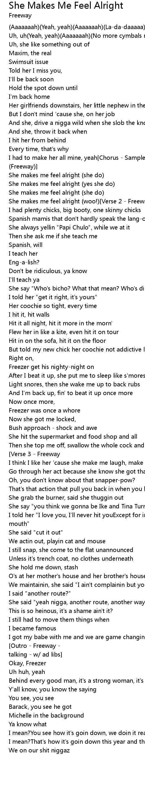 She makes me feel alright (woo!)[Verse 2 - Freeway] |