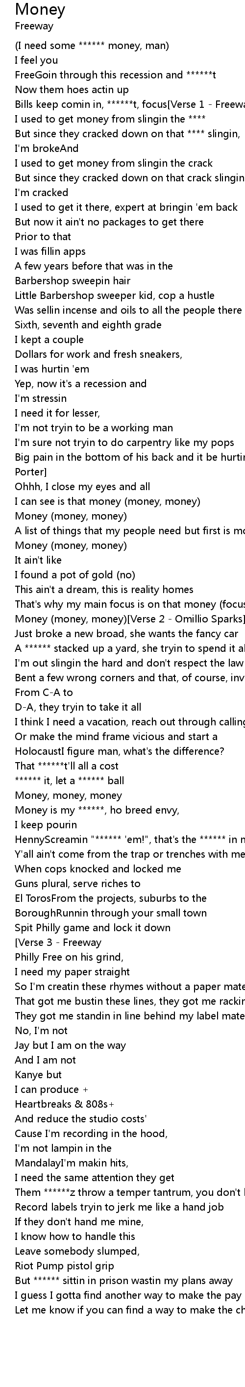 [Intro - Omillio Sparks - talking (Freeway)](I need some ****** money, man) |
