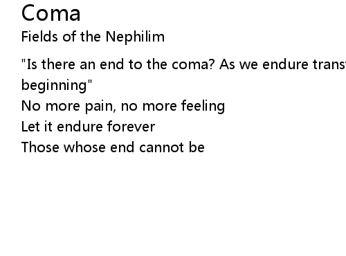 "Is there an end to the coma? As we endure transformation. As we enter the beginning"