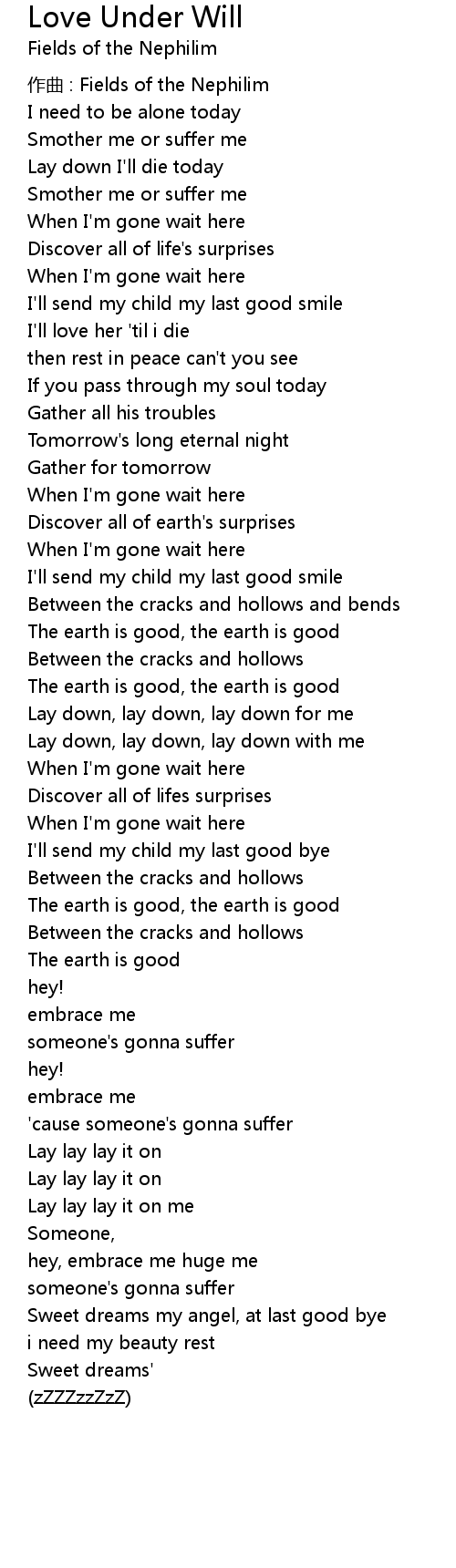 | Song | Love Under Will |