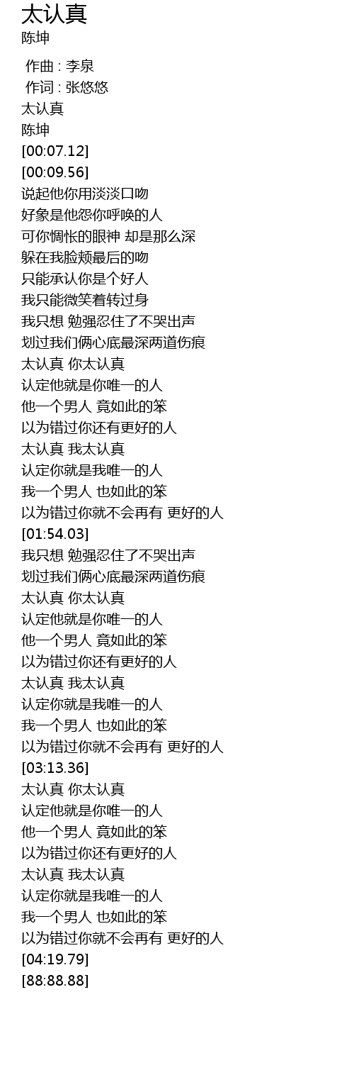 | [03:52.80] | tài rèn zhēn wǒ tài rèn zhēn |