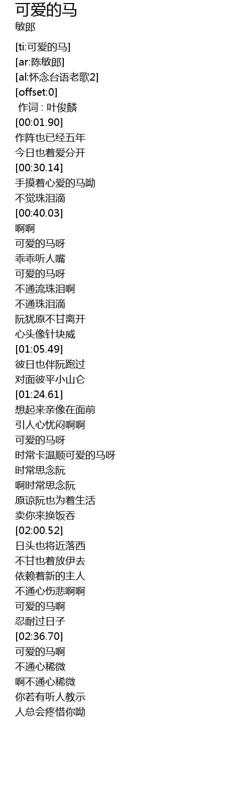 | [01:40.26] | 时常卡温顺可爱的马呀 |
