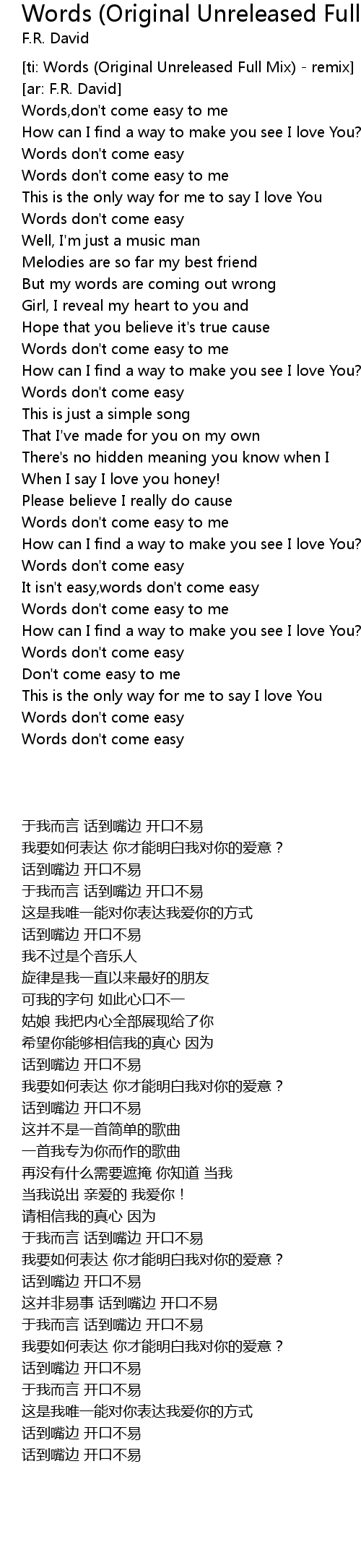 [ti: Words (Original Unreleased Full Mix) - remix] |