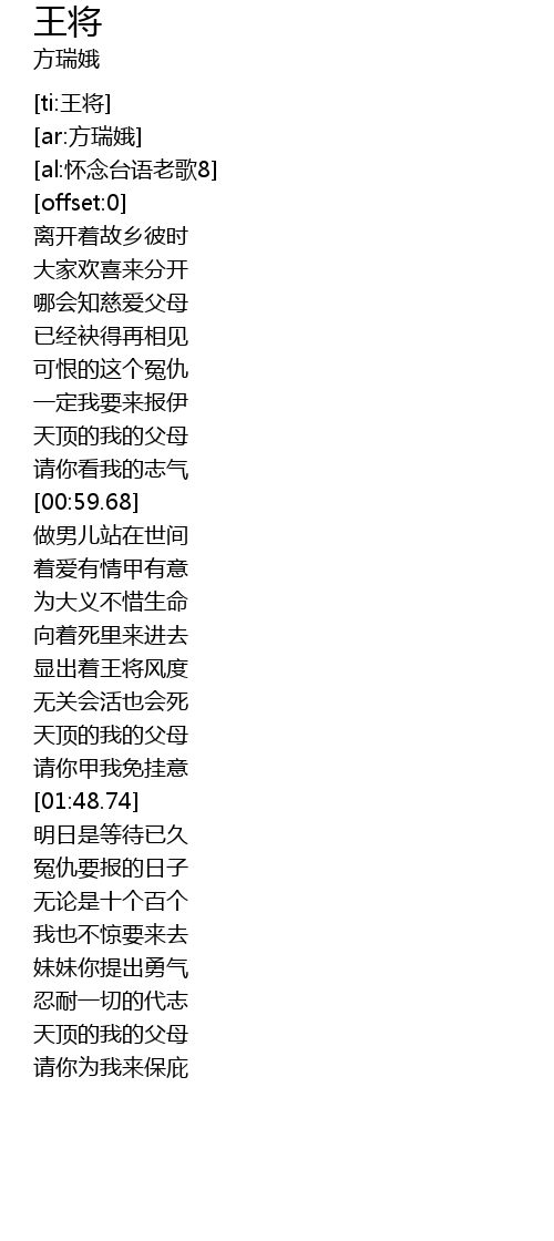| [01:30.23] | xian chu zhe wang jiang feng du |