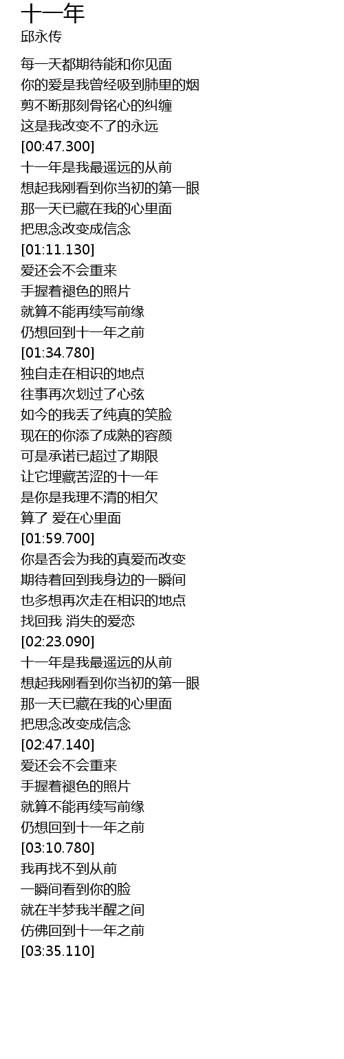 | [00:47.590] | 十一年是我最遥远的从前 |