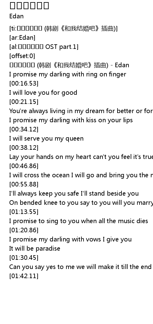 | [00:00.21] | 결혼해주세요 (韩剧《和我结婚吧》插曲) - Edan |