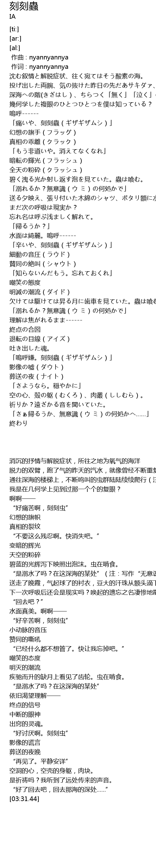 | [02:41.87] | 「嗚呼嫌。刻刻蟲(ギザギザムシ)」 |