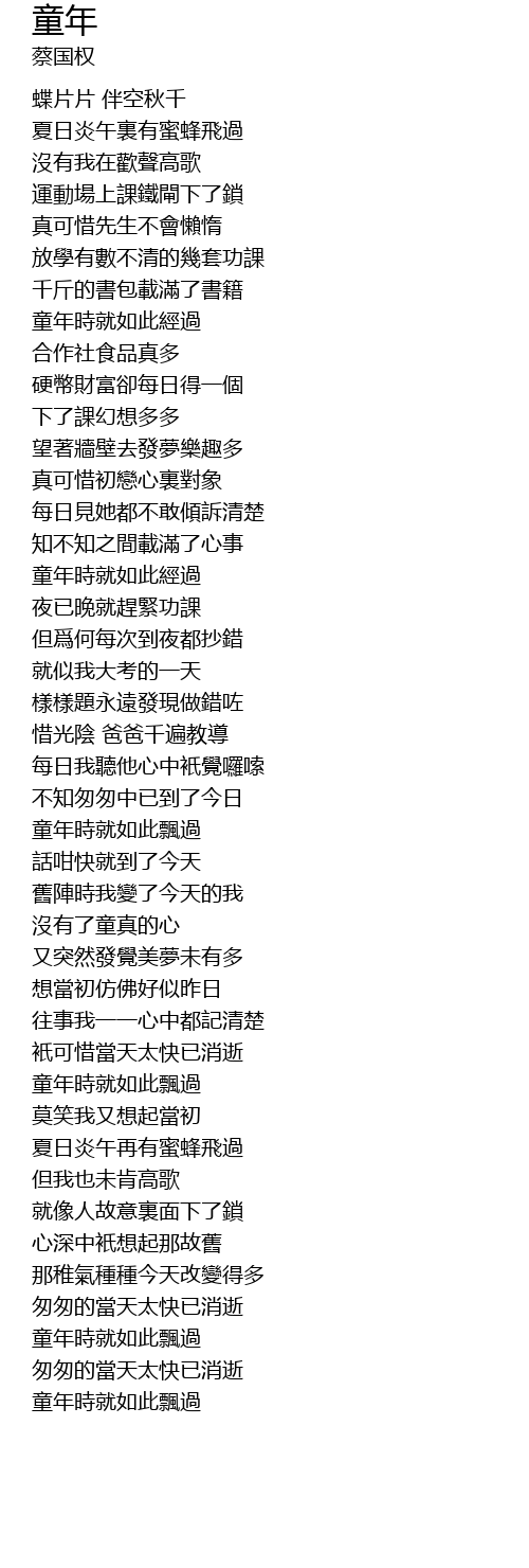 | [03:35.680] | 童年時就如此飄過 |