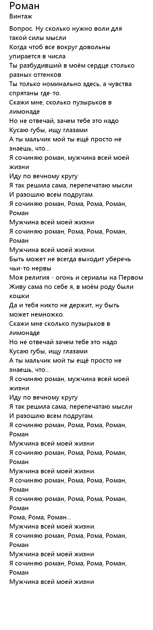 Я сочиняю роман, Рома, Рома, Роман, Роман |