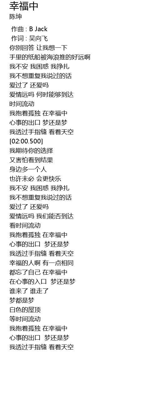 | [03:11.280] | 我抱着孤独 在幸福中 |
