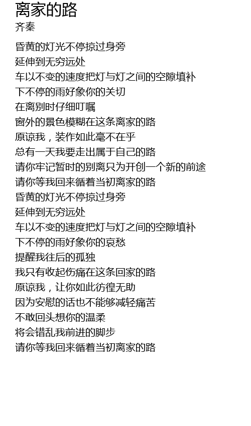 | [00:37.800] | 窗外的景色模糊在这条离家的路 |