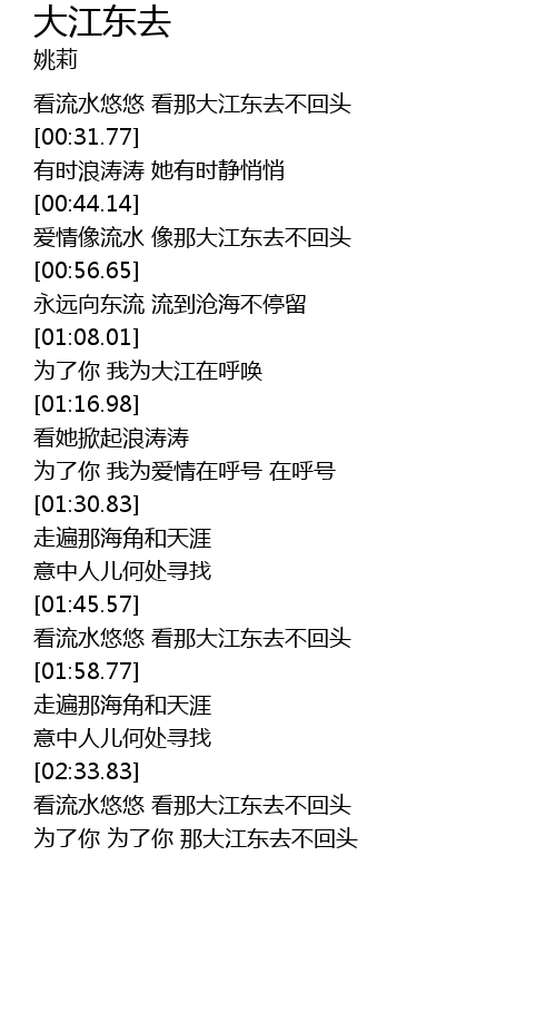 | [02:45.71] | wèi le nǐ wèi le nǐ nà dà jiāng dōng qù bù huí tóu |