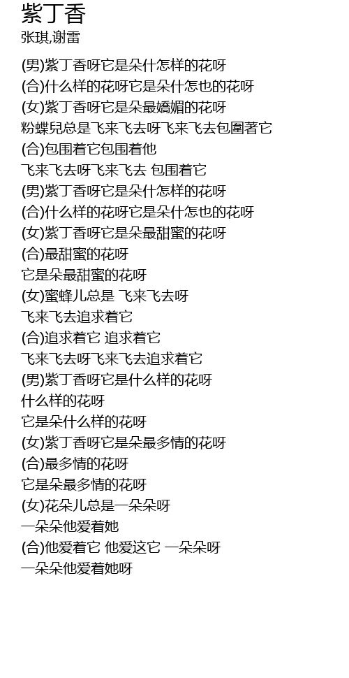 | (女)紫丁香呀它是朵最多情的花呀 | |