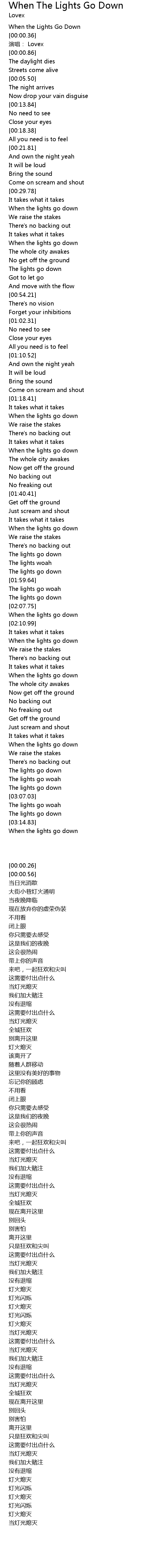 | [00:00.26] | When the Lights Go Down |