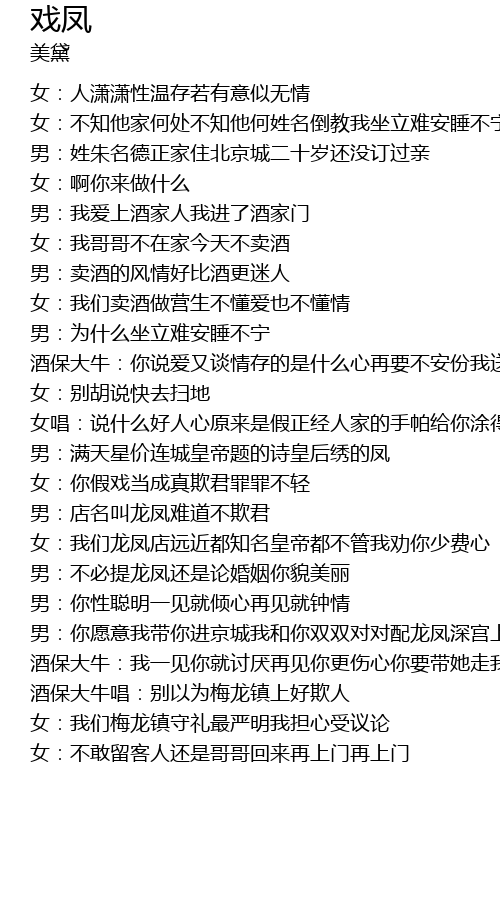 | 男:不必提龙凤还是论婚姻你貌美丽 | |