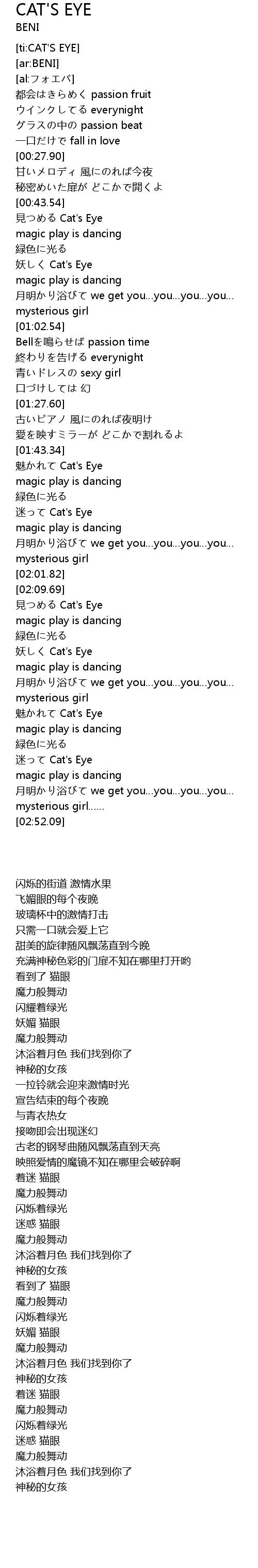 | [00:51.66] | 妖しく Cat's Eye |