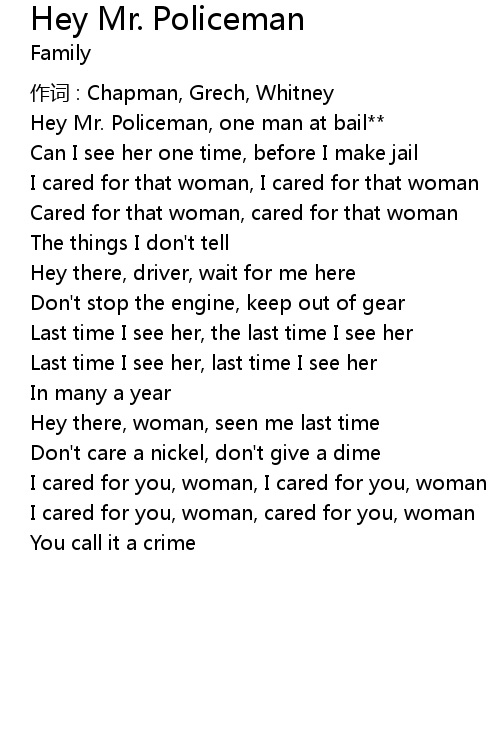 | Song | Hey Mr. Policeman |