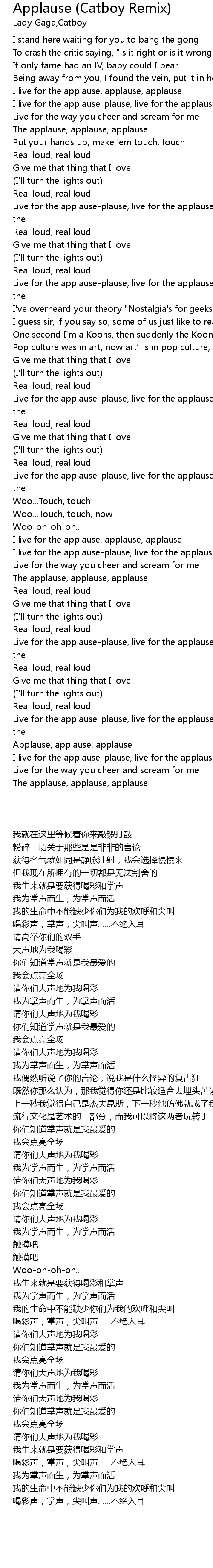 | [01:31.71] | Live for the applauseplause, live for the applauseplause live for the |