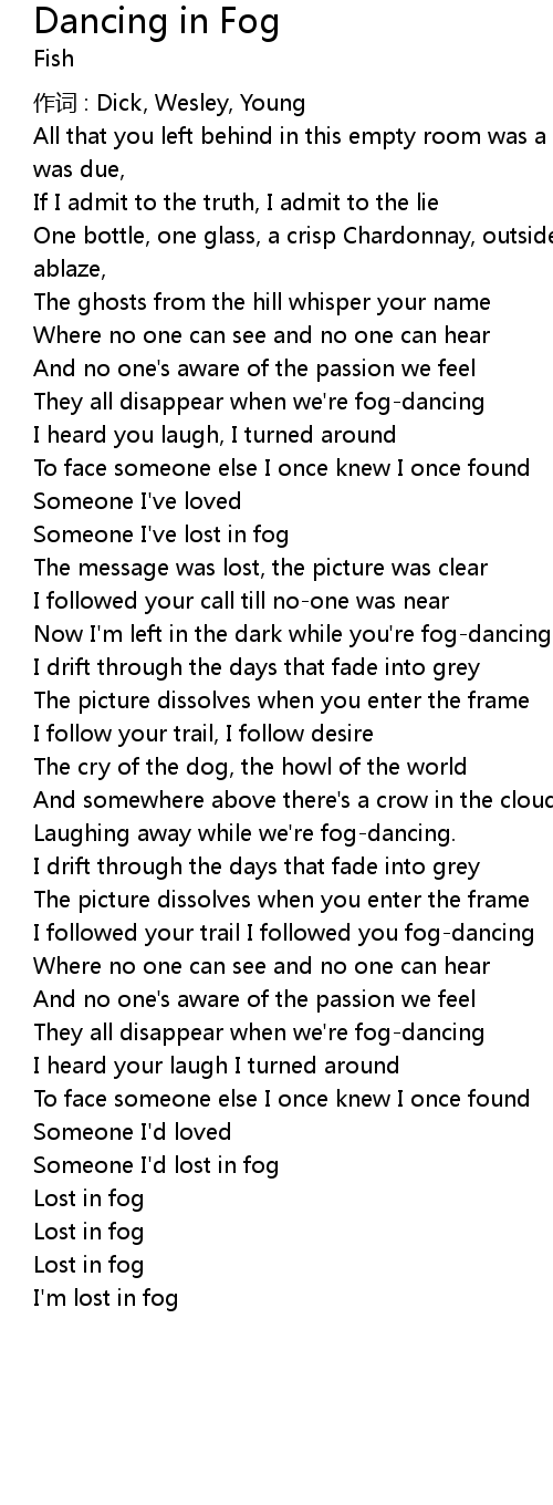| Now I' m left in the dark while you' re fogdancing. | |