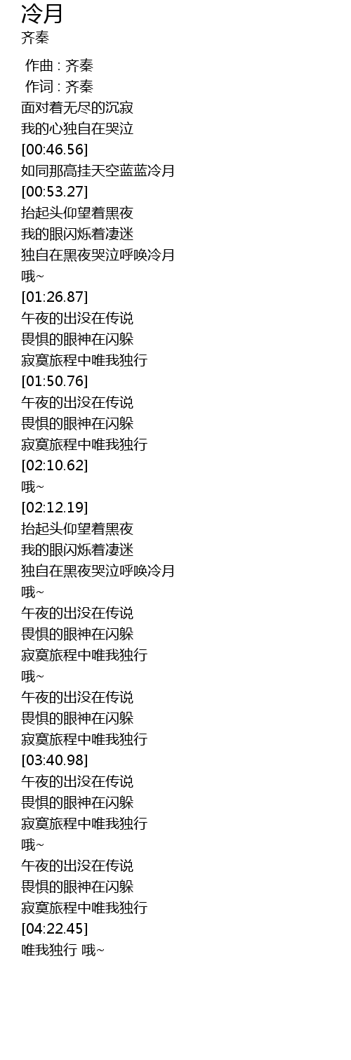 | [01:13.95] | dú zì zài hēi yè kū qì hū huàn lěng yuè |