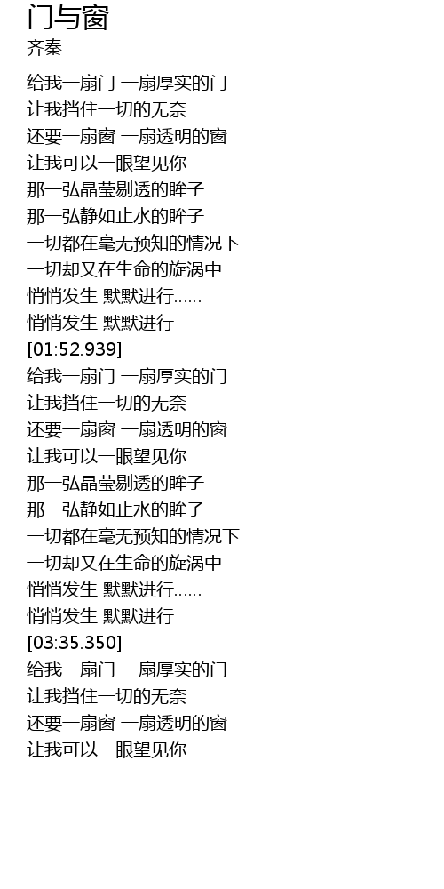 | [03:51.750] | 还要一扇窗 一扇透明的窗 |